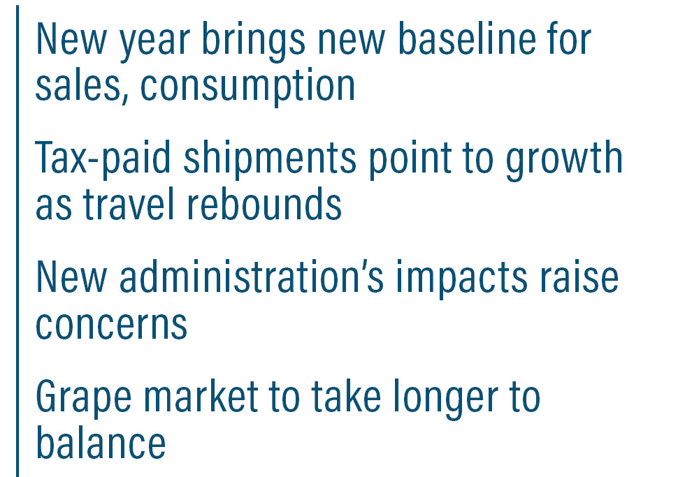 As the U.S. economy continues to recover from the impact of multiple shocks, there are fresh ones taking shape as a new administration enters the White House. A decade of massive change which kicked off in 2020 still has lots of kick left in it, leaving the wine industry seeking a stable footing.